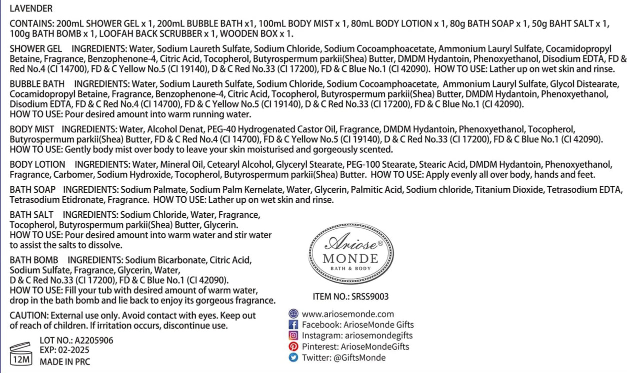 ArioseMonde (Lavender Spa Gift Set) 8pcs Set Body Lotion, Body Mist and others